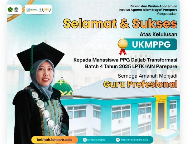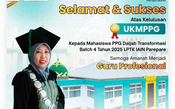 PAREPARE, PIJARNEWS.COM--Lembaga Pendidikan Tenaga Kependidikan (LPTK) IAIN Parepare merilis hasil kelulusan Program Pendidikan Profesi Guru (PPG) Dalam Jabatan Batch 4 Tahun 2025, Selasa (17/3/2026).