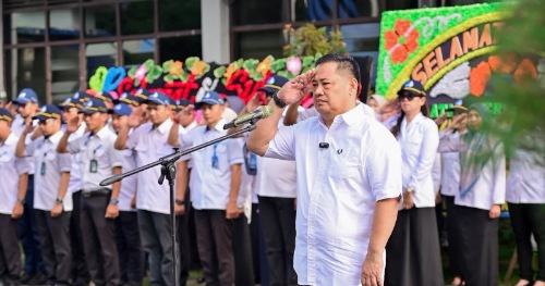 MAKASSAR, PIJARNEWS.COM —Hamzah Ahmad memimpin apel perdana sebagai Plt. Direktur Utama Perumda Air Minum Kota Makassar di halaman kantor pusat. Apel pagi ini diikuti oleh seluruh pegawai Perumda Air Minum Kota Makassar.