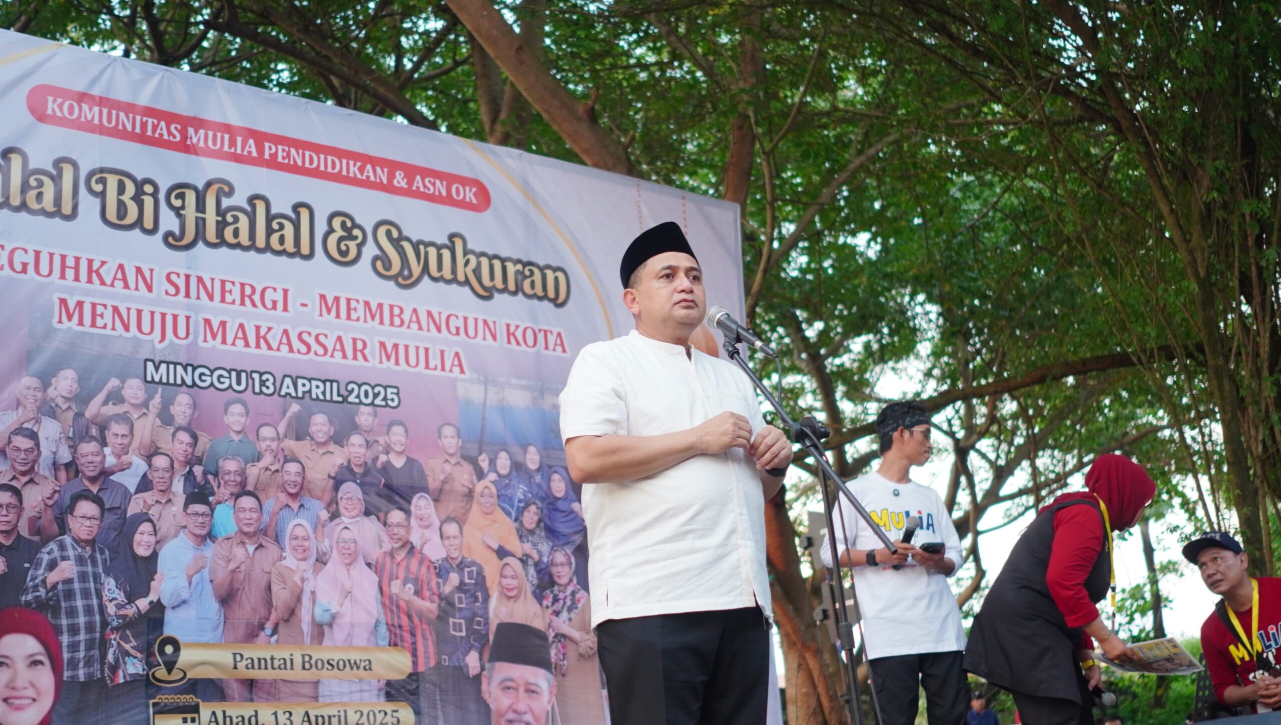 Wali Kota Makassar, Munafri Arifuddin saat silaturahmi bersama komunitas tenaga pendidik, purna tugas ASN, di Pantai Bosowa Indah, Ahad (13/4/2025)
