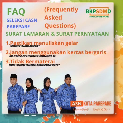 Olehnya itu, BKPSDMD Kota Parepare sudah menyiapkan jawaban pertanyaan-pertanyaan itu. Jawaban itu sudah di posting di media sosial resmi BKPSDMD Parepare, Facebook Bkpsdmd Parepare