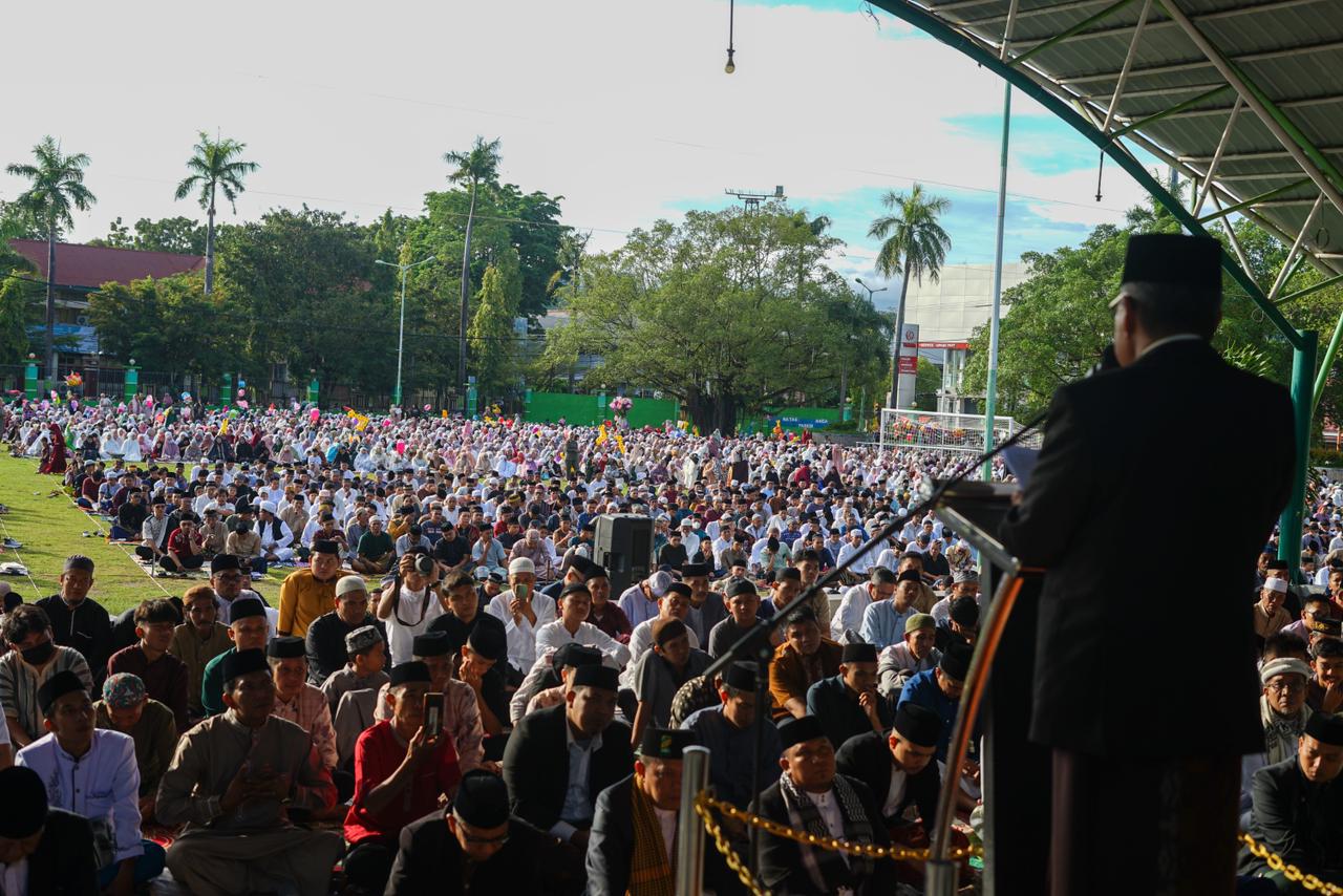 PAREPARE, PIJARNEWS.COM – Wali Kota Parepare, Taufan Pawe bersama ribuan jamaah mengikuti salat Idul Fitri 1444 Hijriyah di Alun-alun Lapangan Andi Makkasau, Kota Parepare, Sabtu (22/3/2023).