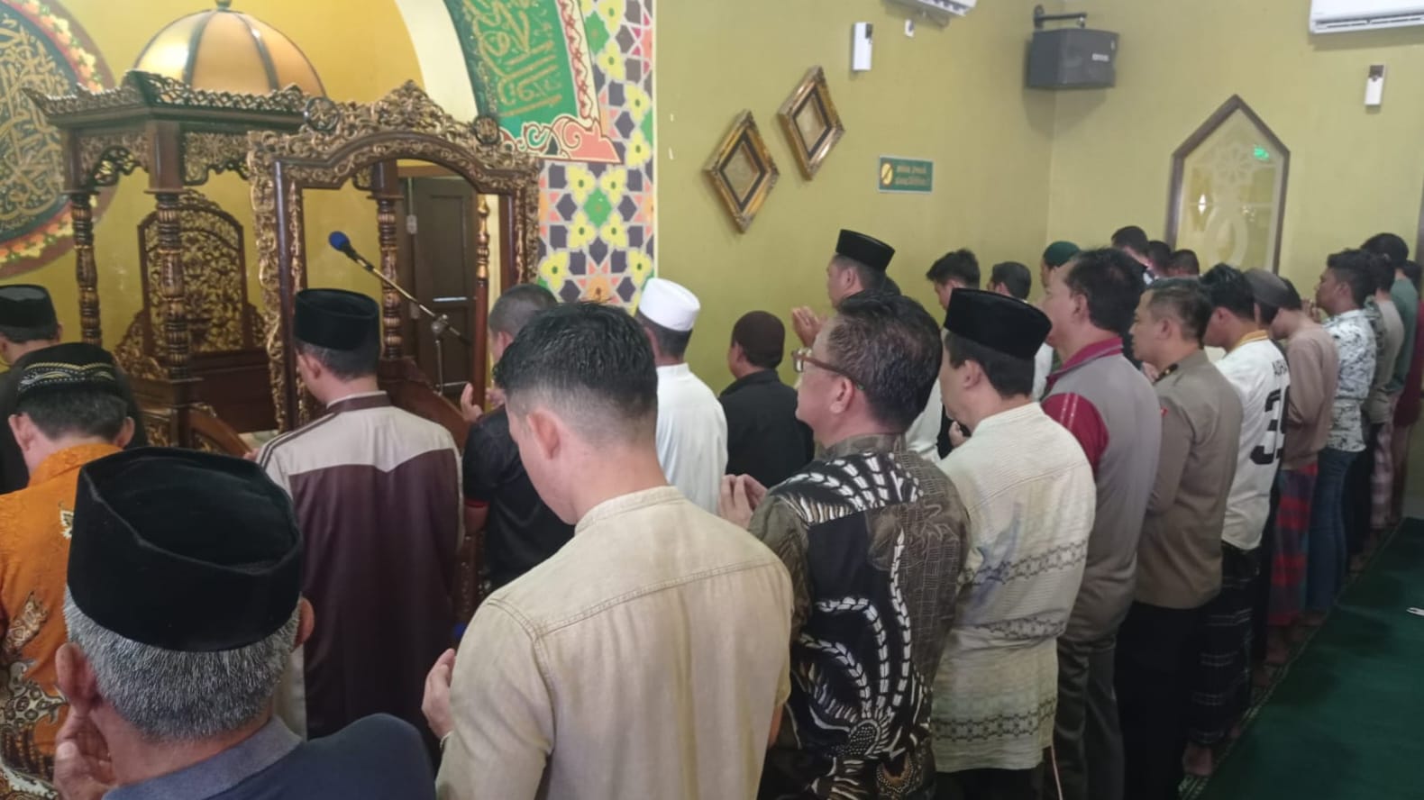 Kapolres Parepare bersama ratusan jemaah masjid berdiri khusyuk, melaksanakan salat gaib, yang dilanjutkan dengan memanjatkan doa untuk almarhum sekaligus doa yang menguatkan hati keluarga yang ditinggalkan.