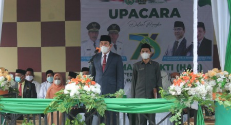 Dalam upacara peringatan bertema “Transformasi Layanan Umat” tersebut, Mahmud Yusuf membacakan sambutan Menteri Agama, Yaqut Cholil Qoumas.