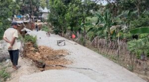 “Beberapa hari lalu jalannya retak-retak, setelah salat Jumat runtuh, tidak ada suara atau hujan, tiba-tiba saja begitu,” katanya, saat ditemui di lokasi kejadian, Sabtu (26/3/2022).