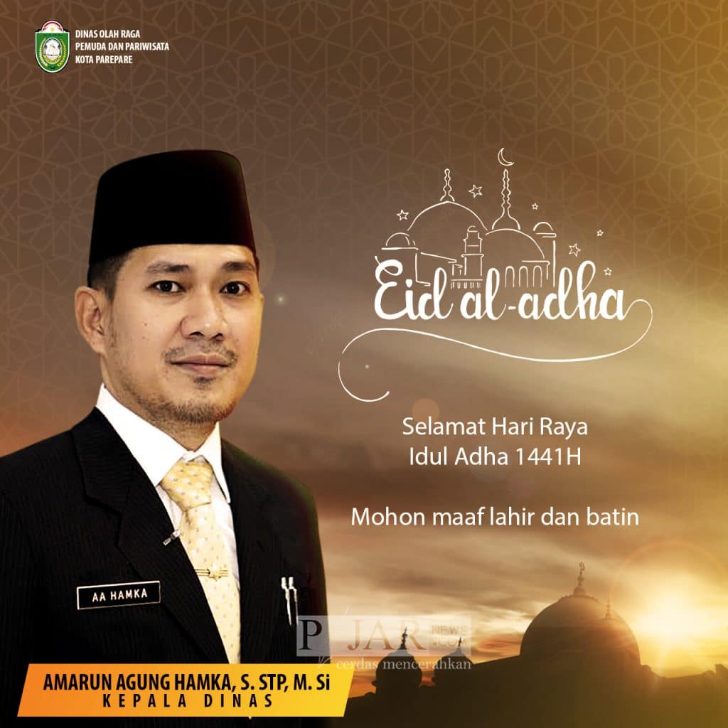 <p dir="ltr">Amarun Agung Hamka, <a href="http://S.STP">S.STP</a>, <a href="http://M.Si">M.Si</a> selaku Kepala Dinas Pemuda, Olahraga dan Pariwisata (Disporapar) Kota Parepare beserta staf dan juga keluarga mengucapkan Selamat Hari Raya Idul Adha 1441 Hijriyah. Mohon Maaf Lahir dan Batin</p> [caption id="attachment_59005" align="aligncenter" width="1024"]<img class="wp-image-59005 size-large" src="https://www.pijarnews.com/wp-content/uploads/2020/07/dopp-pare-copy-1024x1024.jpg" alt="" width="1024" height="1024"> Kadisporapar Kota Parepare, Amarun Agung Hamka[/caption]