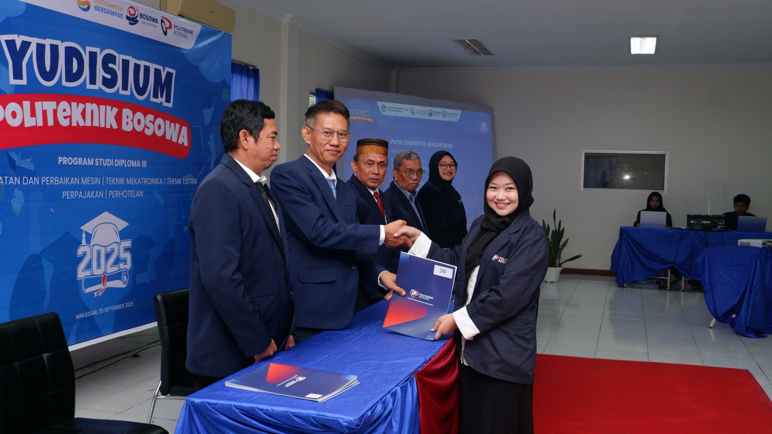 Putri menjadi salah satu peserta dalam prosesi Yudisium Politeknik Bosowa 2025 yang digelar di Aula Kampus, Kamis (25/9/2025).