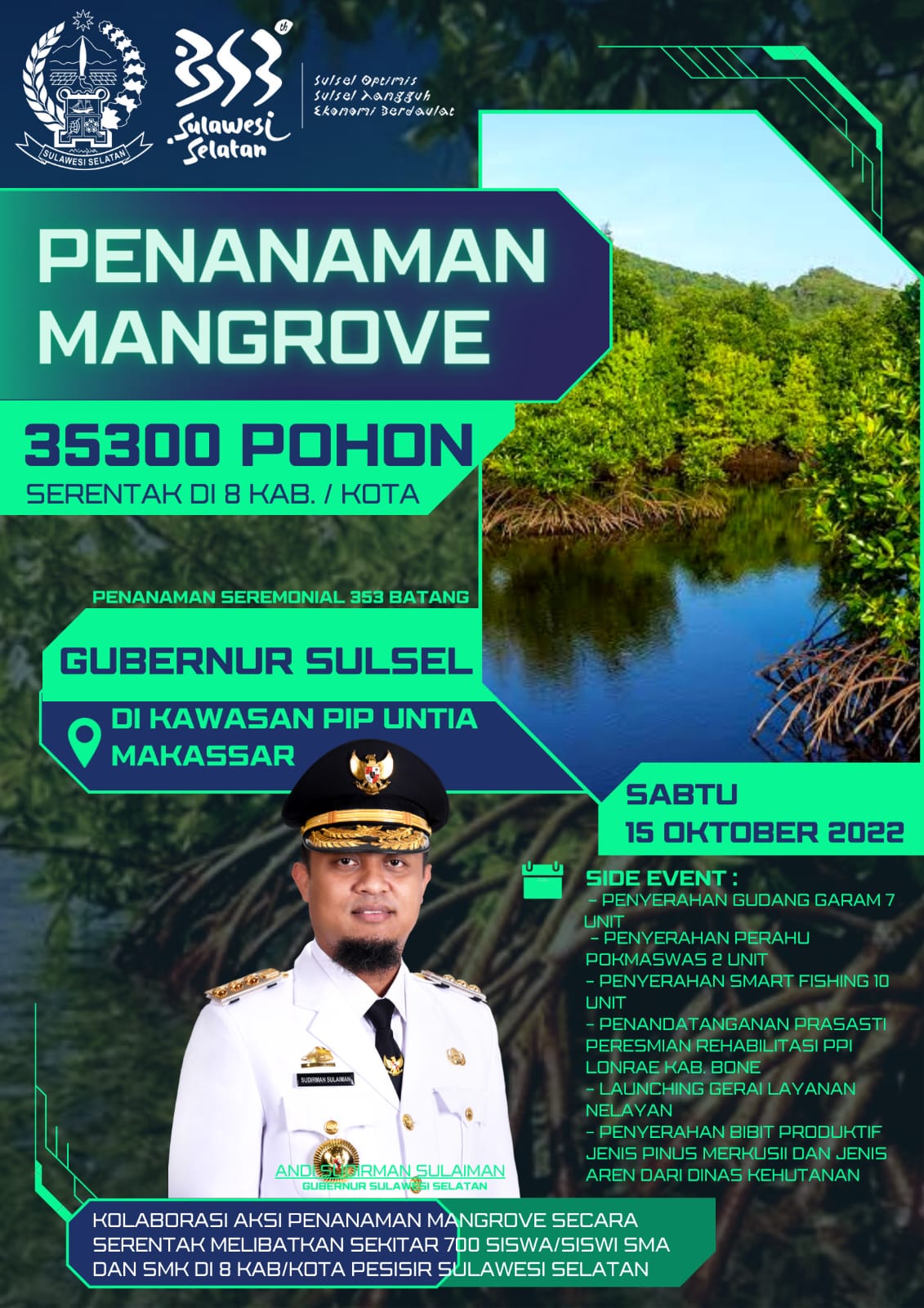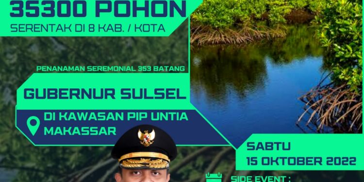 MAKASSAR, PIJARNEWS.COM— Gubernur Sulsel Andi Sudirman Sulaiman akan memimpin langsung proses penanaman mangrove sebanyak 35.300 pohon di wilayah pesisir Sulsel sebagai rangkaian hari jadi ke 353 Provinsi Sulsel. Pelaksanaan penanaman ratusan ribu mangrove ini dilakukan hari ini, Sabtu, (15/10/2022).