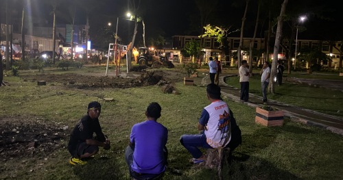Penataan dilakukan mulai dari pembersihan area hingga penyalaan lampu-lampu di sekitar taman.