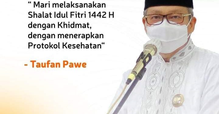 “Shalat Idul Fitri 1442 H diperbolehkan dilaksanakan di Masjid atau lapangan terbuka,” tulis Taufan Pawe.