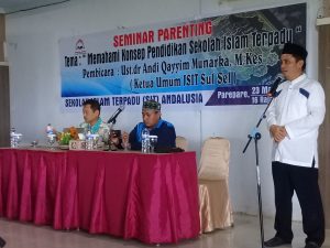 Seminar ini mengangkat tema, “Memahami Konsep Pendidikan Sekolah Islam Terpadu.” Tampil sebagai pembicara, Ustadz dr Andi Qayyim Munarka, M.Kes, Ketua Umum Jaringan Sekolah Islam Terpadu (JSIT) Sulawesi Selatan.
