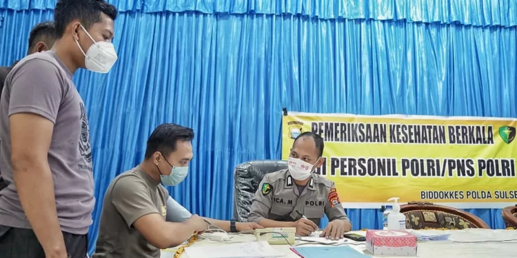 Pemeriksaan kesehatan berkala dari Bidang Kedokteran dan Kesehatan (Biddokes) Polda Sulsel ini, dilaksanakan di Baruga Pratistha Polres Parepare.