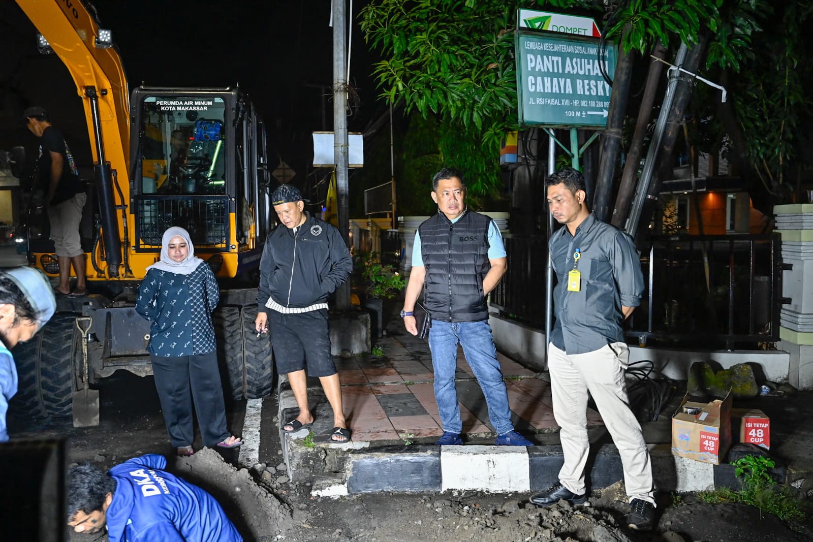 Setidaknya 15 personel dari PDAM diturunkan untuk menangani pengerjaan tersebut. Selain ekskavator bor, satu unit mesin penyedot air juga disiagakan di lokasi guna mencegah terjadinya genangan selama proses perbaikan. Mereka mulai bekerja sesaat setelah magrib, usai melakukan survei kondisi lapangan.