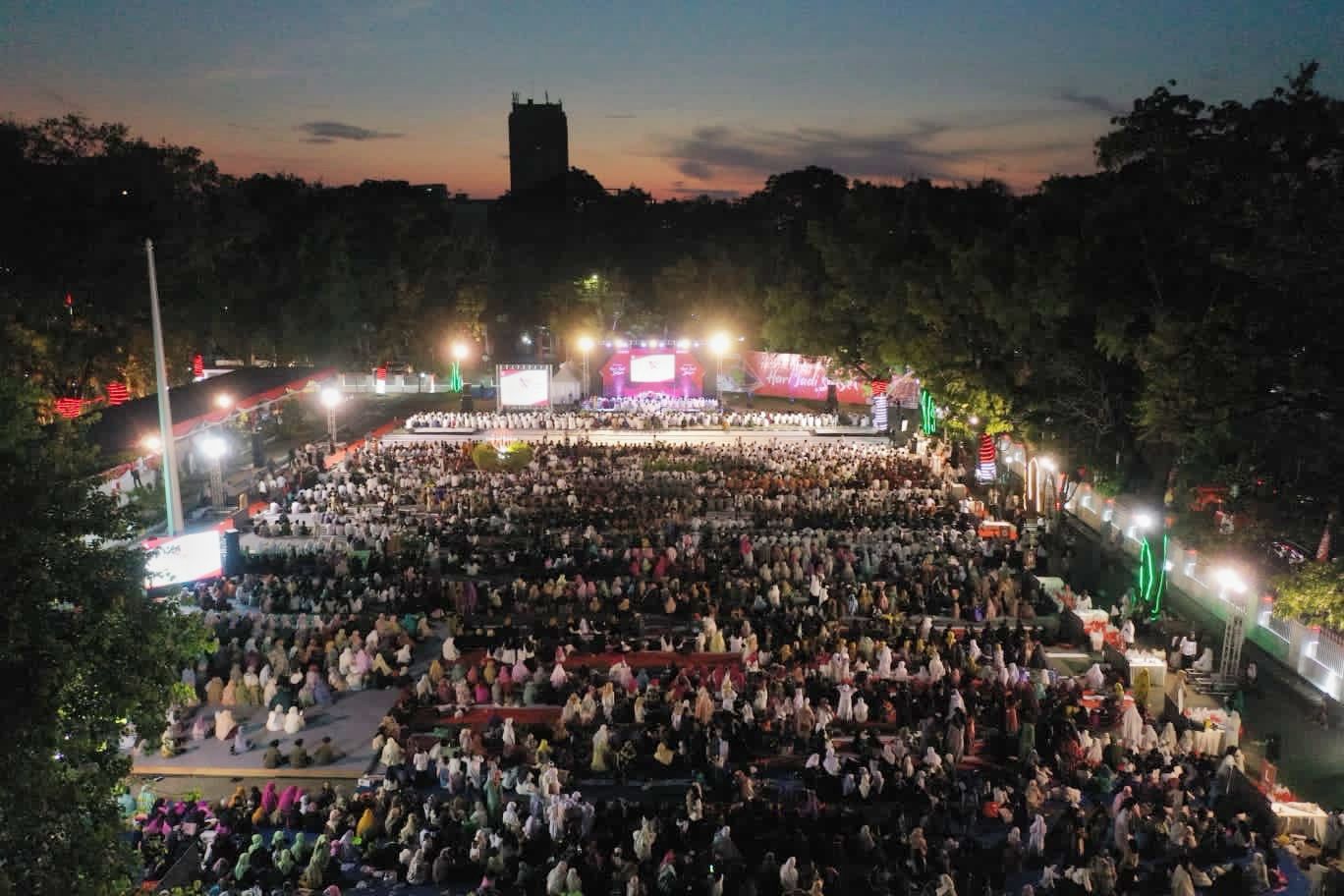 Rangkaian acara diawali dengan sambutan gubernur, sholat magrib berjamaah, taukziah dan doa, salat Isya berjamaah dan di tutup dengan pembangian santunan kepada 3.540 anak anak yatim piatu.