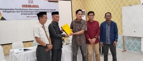 Dalam kegiatan tersebut AMAN juga menyerahkan draf awal Naskah Akademik dan Rancangan Peraturan Daerah Pengakuan dan Perlindungan Hak-Hak Masyarakat Adat kepada DPRD Sidrap.