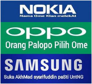 Mulai dari merek Samsung, diplesetkan menjadi Suka Akhmad Syarifuddin Pasti Untung, Vivomenjadi Viva Ome, hingga Nokia yang diartikan Nama Ome Kian Melekat. Juga ada Oppo (Orang Palopo Pilih Ome) dan Asus (Akhmad Syarifuddin untuk Semua).