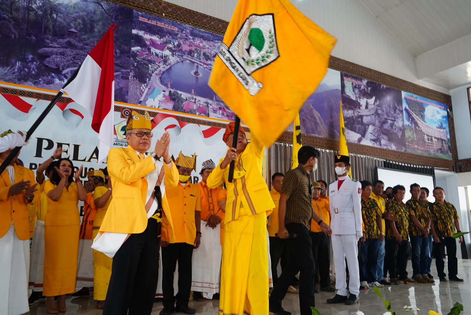 Saat menerima Pataka Golkar dari Taufan Pawe, Ketua Golkar Tana Toraja Victor Datuan Batara menegaskan, siap memenangkan Partai Golkar pada seluruh agenda Pemilu 2024 mendatang.