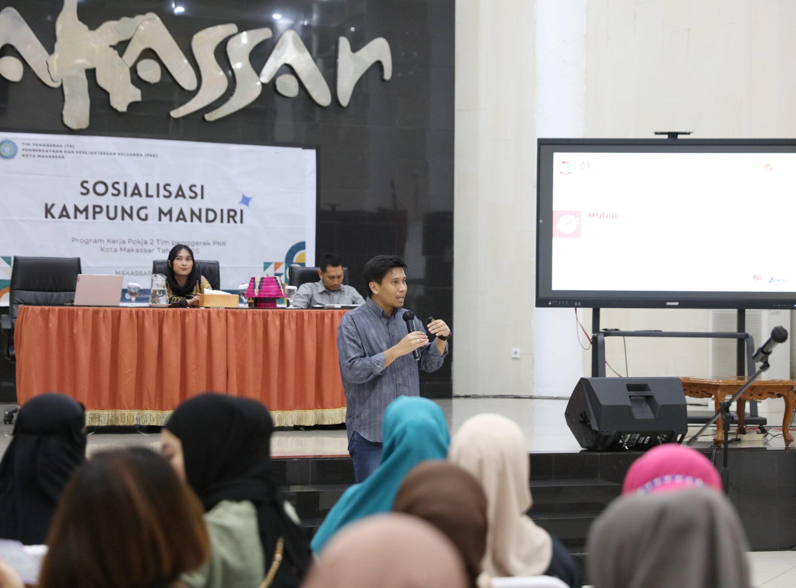General Manager Inkubator UMKM Kota Makassar, Khairul Umam, turut hadir sebagai narasumber dan menjelaskan program Kampung Mandiri ini akan berlanjut dengan mendorong pelaku UMKM masuk ke tahapan-tahapan inkubasi yang telah disiapkan.