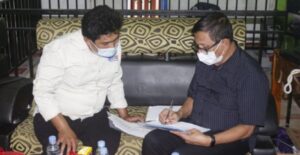 Hendry Ch Bangun didampingi Plt Ketua PWI Parepare, Andi Mulyadi tiba di Kantor Redaksi Pijarnews.com Jalan Andi Sulolipu, No 19, Kelurahan Ujung Sabbang, Kecamatan Ujung, Kota Parepare, Sulawesi Selatan sekira pukul 16.30 Wita.