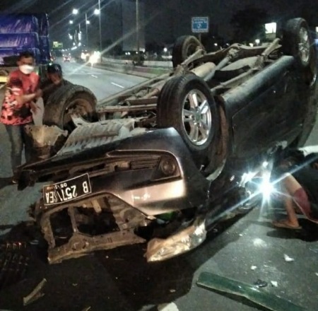 Namun lanjutnya, dalam perjalanan ke Masjid Istiqlal, mobil mengalami kecelakaan di jalan tol. Informasinya mobil kecelakaan tunggal karena mengalami pecah ban pada bagian depan.