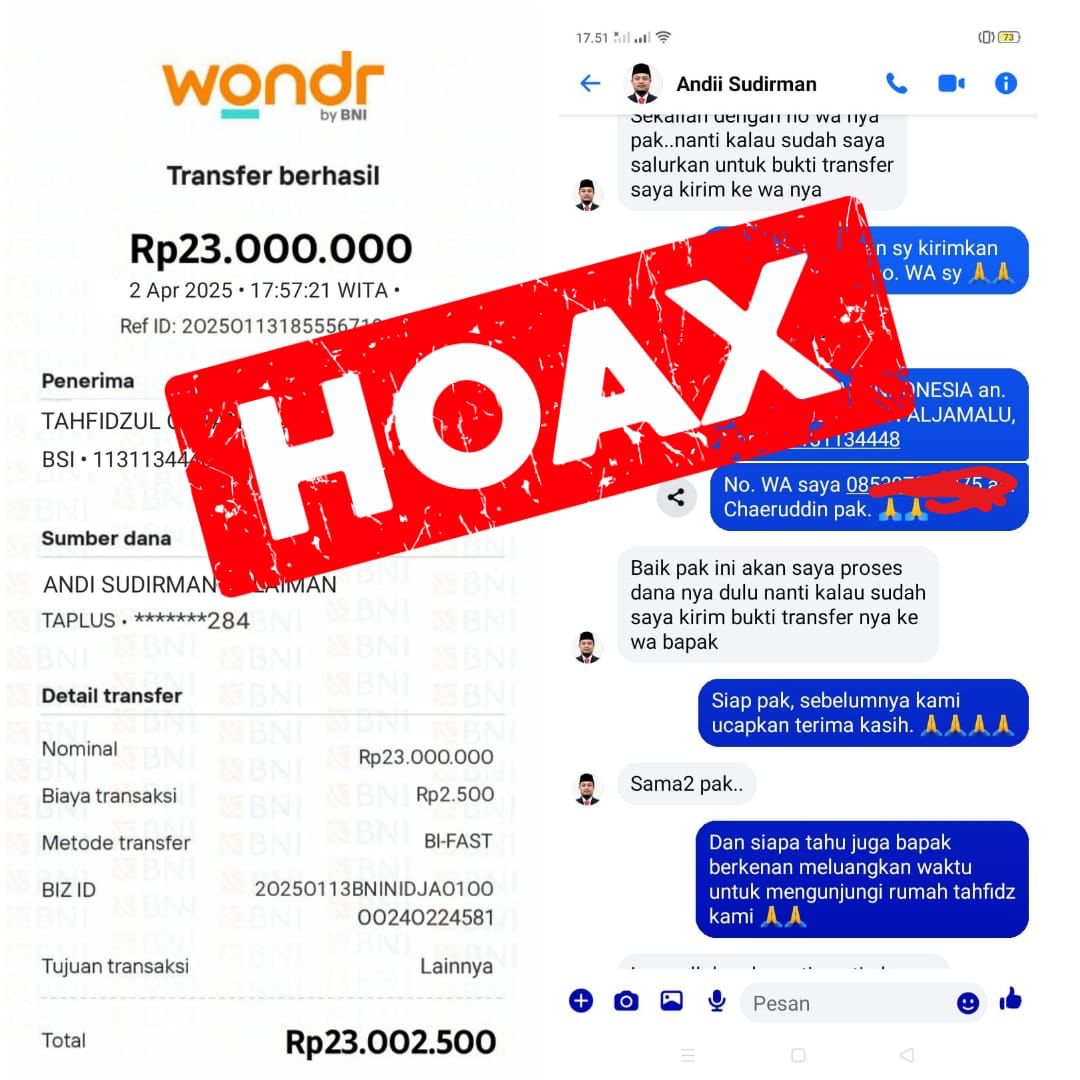 Kepala Dinas Komunikasi, Informatika, Statistik, dan Persandian (Kominfo SP) Provinsi Sulawesi Selatan, Andi Winarno Eka Putra, menegaskan bahwa Gubernur Andi Sudirman Sulaiman tidak pernah melakukan transfer dana tersebut, apalagi melalui akun media sosial pribadi yang diduga palsu.