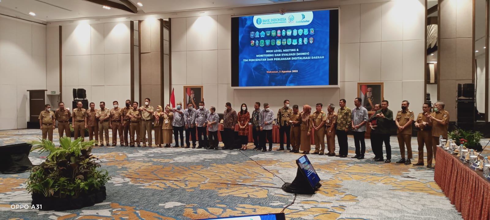 MAKASSAR, PIJARNEWS.COM– – Sebanyak 25 kepala daerah di Provinsi Sulawesi Selatan (Sulsel), menandatangani dukungan untuk meningkatkan kuantitas dan kualitas elektronifikasi transaksi pemerintah daerah (ETPD) saat high level meeting: monitoring dan evaluasi Tim Percepatan dan Perluasan Digitalisasi Daerah (TP2DD) se-Sulawesi Selatan, Selasa (8/2/2022), di Hotel Claro Makassar.