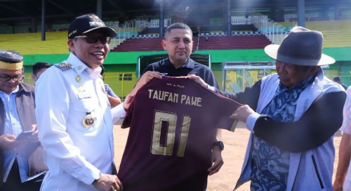 Pemberian Jersey sebagai cinderamata sekaligus bentuk apresiasi yang sangat besar kepada Taufan Pawe.