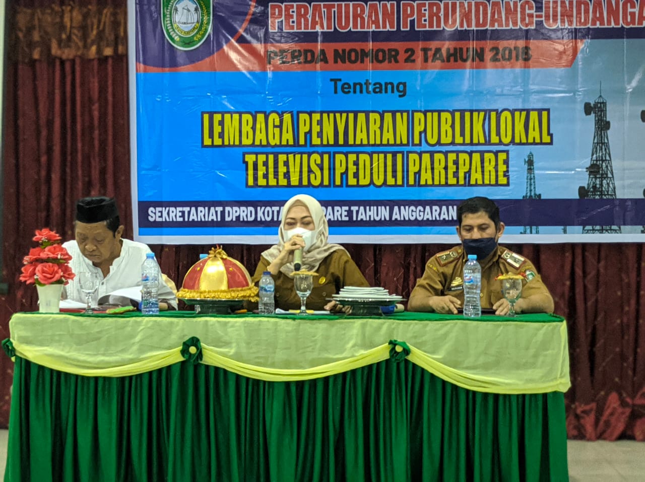 PAREPARE, PIJARNEWS.COM — Anggota Komisi I DPRD Parepare, Indriasari Husni mensosialisasikan Perda Lembaga Penyiaran Publik Lokal (LPPL) Televisi Peduli Parepare. Kegiatan itu dilakukan di Aula Hotel Delima Sari, Senin (25/10/2021).