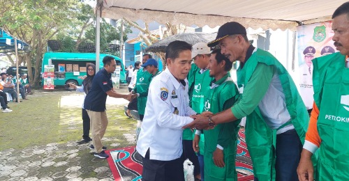 Acara dihadiri Kepala Bidang Sarana dan Prasarana DTPHPKP Sidrap, Suriyanto, perwakilan Petrokimia Kayaku, Ruly Budiheriyanto dan para petani dan KTNA Kabupaten Sidrap.