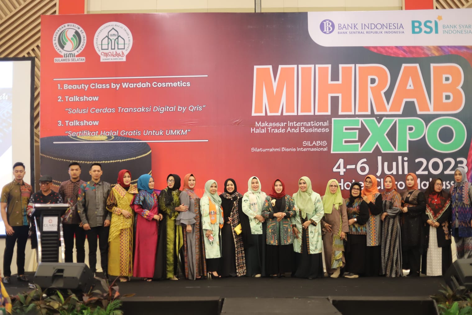 Peragaan busana dalam kegiatan fashion show dengan model para Pengurus Dekranasda Parepare yang berlatar belakang Lurah, Camat, hingga Kepala Dinas ini ditampilkan di hadapan para Ikatan Saudagar Muslim se-Indonesia (ISMI).