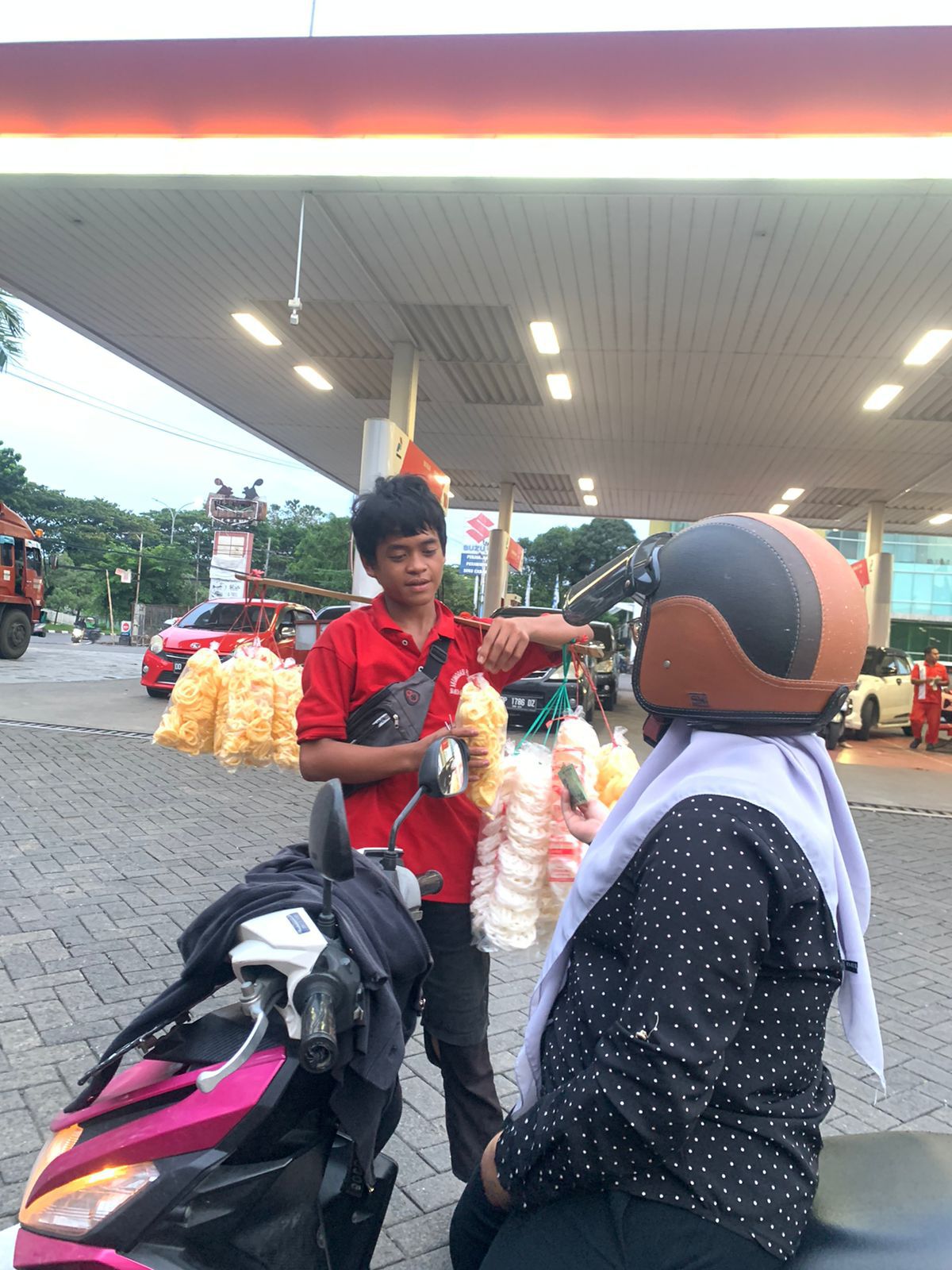 Setiap hari, setelah menggantungkan seragam sekolahnya, Arman bergegas menuju tempat biasa ia berjualan. Mulai pukul 3 sore hingga malam tiba, ia menyusuri kawasan sekitar SPBU Pertamina di daerah itu. Tak jarang, ia menawarkan kerupuk kepada pengendara yang sedang mengantre bahan bakar.