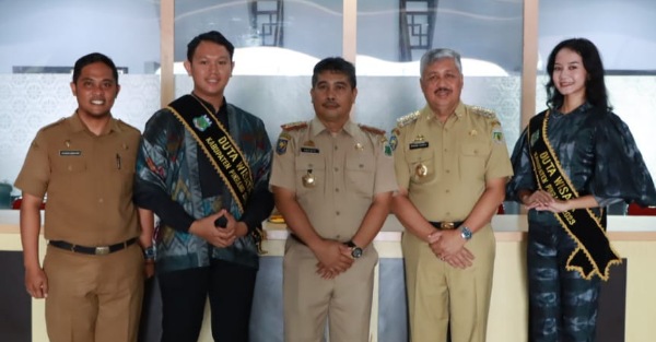 Pada kesempatan ini, Bupati Irwan juga berkesempatan melakukan tes pengetahuan pariwisata pada dua duta tersebut.