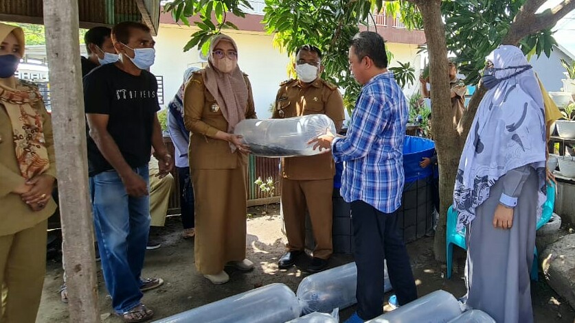 PAREPARE, PIJARNEWS.COM — Ketua Fraksi NasDem DPRD Parepare Yasser Latief, di dampingi Kepala Dinas PKP Kota Parepare, Wildana menyerahkan ribuan bantuan bibit ikan lele kepada kelompok budidaya ‘Bale Ceppi’ di Jalan Persatuan Lapadde, Senin (4/10/2021).