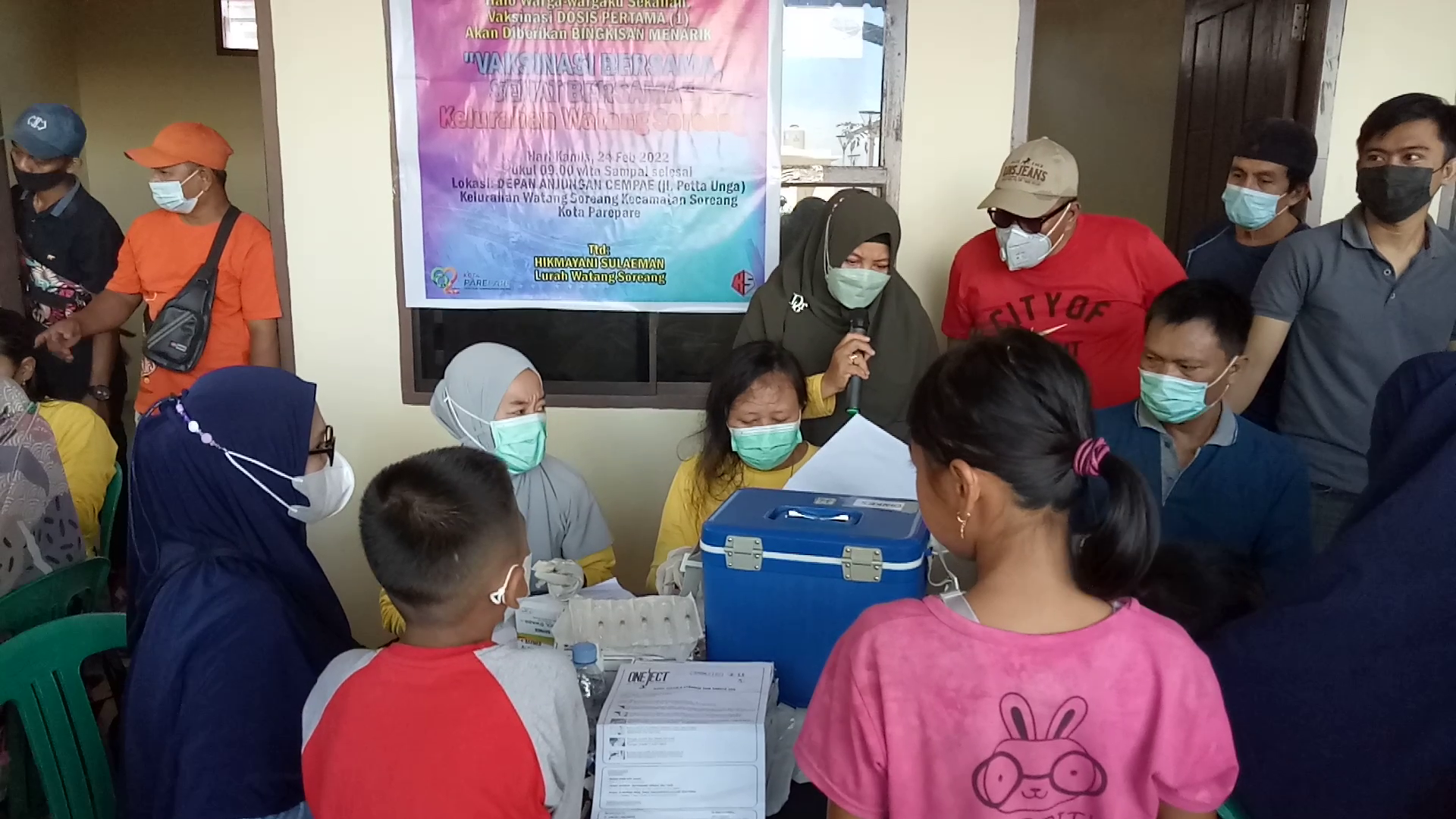 Lurah Watang Soreang, Hikmayani Sulaeman yang ditemui di lokasi menjelaskan, kegiatan vaksinasi bertajuk ‘Vaksinasi bersama, sehat sehat bersama’ itu terlaksana atas kerjasama Pemkot Parepare dengan Polres Parepare.