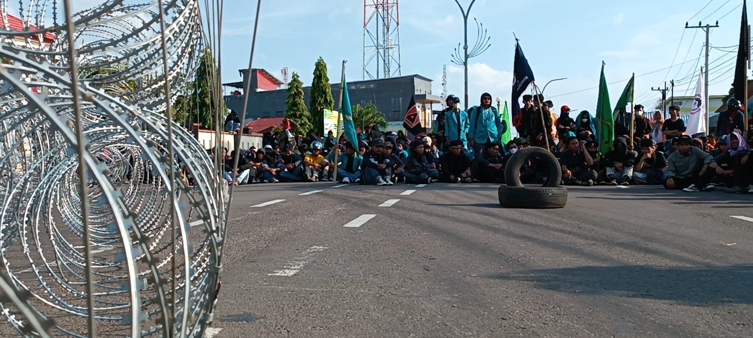 Mereka berorasi di depan Kantor DPRD. Jalan Jendral Sudirman yang biasa padat kendaraan pun mereka blokade sembari menyuarakan sejumlah tuntutan.