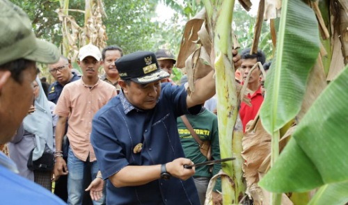 Pada kesempatan ini pula, PJ Gubernur Sulsel ini mempraktekkan cara memotong batang pisang dan memperlihatkan salah satu metode memperbanyak bibit pisang kepada penyuluh dan petani.