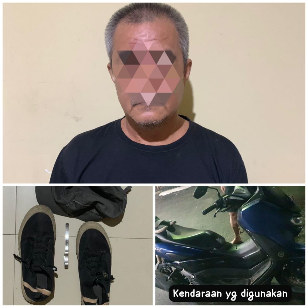 Adapun barang bukti yang kita amankan, 1 (Satu) unit sepeda motor Yamaha Nmax warna biru doff DD 2119 MQ (Kendaraan yg digunakan), 1 (Satu) buah gelang (Digunakan untuk merobek baligho), 1 (Satu) buah cincin (Digunakan unruk merobek baligho), 1 (Satu) pasang sepatu, 1 (Satu) buah Topi.