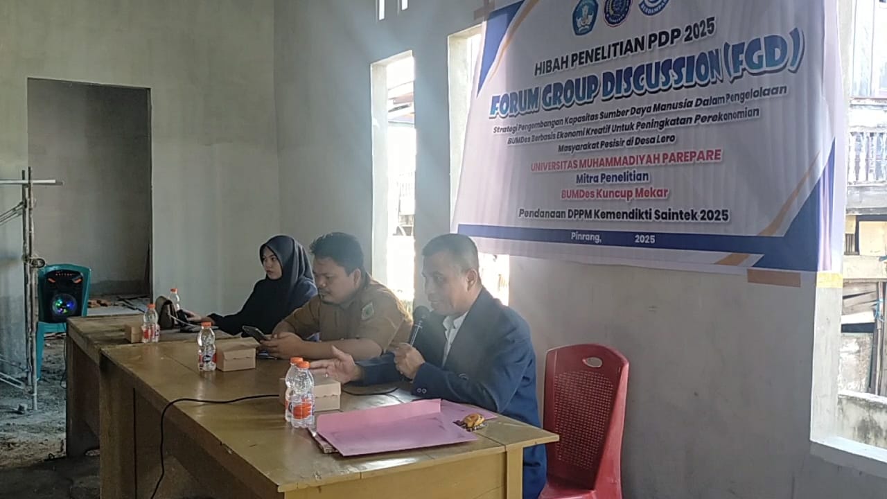 “Melalui penelitian ini, kami ingin memberikan kontribusi nyata dalam meningkatkan kesejahteraan masyarakat pesisir. Penguatan kapasitas SDM dalam pengelolaan BUMDes berbasis ekonomi kreatif adalah langkah penting agar potensi lokal bisa dimaksimalkan secara berkelanjutan,” ungkap Dr. Irwan saat Forum Group Discussion (FGD), Selasa, 8 Juli 2025.