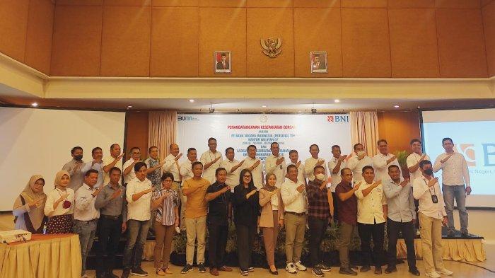 Penandatanganan nota kesepahaman (MoU) kedua bela pihak berlangsung di Jasmine Room, Hotel Claro, Kota Makassar, Senin (20/12/2021). Selain penandatanganan Mou, juga dilakukan penandatanganan kerja sama sembilan perusahaan pengembang di bawah naungan APERSI Sulsel dengan BNI.