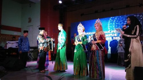 PAREPARE, PIJARNEWS.COM — Ketua Badan Pengurus Harian (BPH) Universitas Muhammadiyah (UM) Parepare, Ir H Yasser Latief, MM memasangkan selempang kepada salah seorang duta kampus yang terpilih pada ajang Pemilihan Duta Kampus.