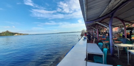 Usai olahraga renang, umumnya warga menikmati makanan dan minuman yang dijual pedagang di area Pantai Senggol. (*)