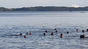PAREPARE, PIJARNEWS.COM — Puluhan warga berendam dan berenang di Pantai Senggol, Kota Parepare, Sabtu (11/9/2021).