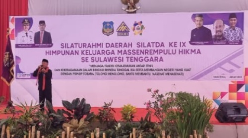 KOLTIM, PIJARNEWS.COM – Bupati Enrekang, Muslimin Bando menghadiri puncak acara Silaturahmi Daerah (Silatda) Himpunan Keluarga Massenrempulu (HIKMA) se-Sulawesi Tenggara. Kegiatan itu berlangsung di Aula Pemda Kolaka Timur (Koltim), Ahad-Senin, (22-23/1/2023).