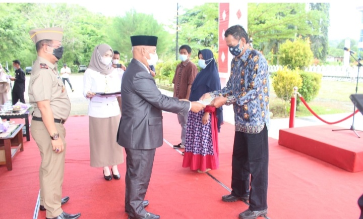 ENREKANG, PIJARNEWS.COM – Bupati Enrekang, Muslimin Bando membacakan sambutan seragam Menteri Agraria dan Tata Ruang, Sofyan A Djalil dalam rangka Badan Pertanahan Nasional (BPN) Kabupaten Enrekang Upacara Hari Ulang Tahun (HUT) Agraria dan Tata Ruang tahun 2021 yang digelar oleh Badan Pertanahan Nasional (BPN) Kabupaten Enrekang.
