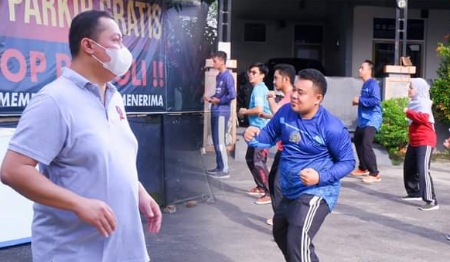 “Senam pagi ini dilaksanakan untuk menjaga kebugaran dan kesehatan bagi para pegawai agar dapat melakukan aktifitas dengan lancar,” tambahnya.