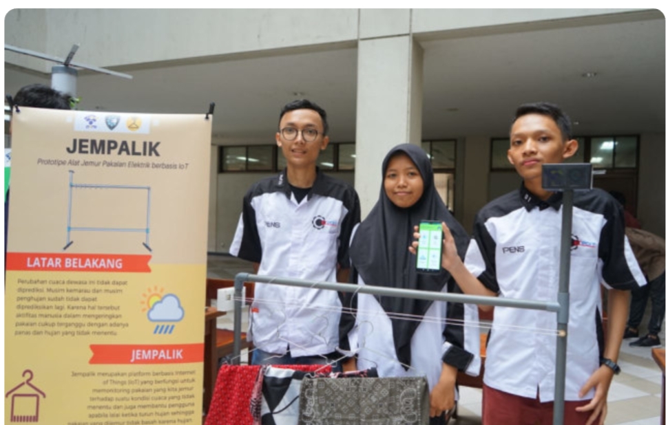 Berawal dari masalah klasik ini, tiga mahasiswa program studi D4 Teknik Komputer dari Politeknik Elektronika Negeri Surabaya (PENS) membuat “Jempalik” atau Jemuran Pakaian Elektrik yang berbasis IoT.