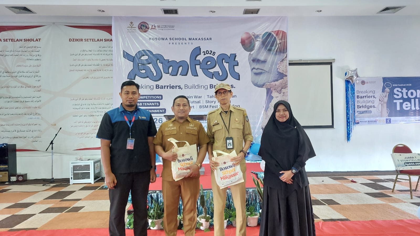 Pembukaan BSM Fest 2025 disambut langsung oleh Kepala Bidang SMA Dinas Pendidikan Provinsi Sulawesi Selatan, Drs. H. Muhammad Nurkusuma didampingi pengawas SMA Provinsi Sulsel, Kepala Sekolah SMA BSM, Dr. Muhammad Yusuf, S.Pd. I, M.Pd. dan Kepala Sekolah SMP BSM, Mirna Kartika, S.Pd.I, M.Pd.