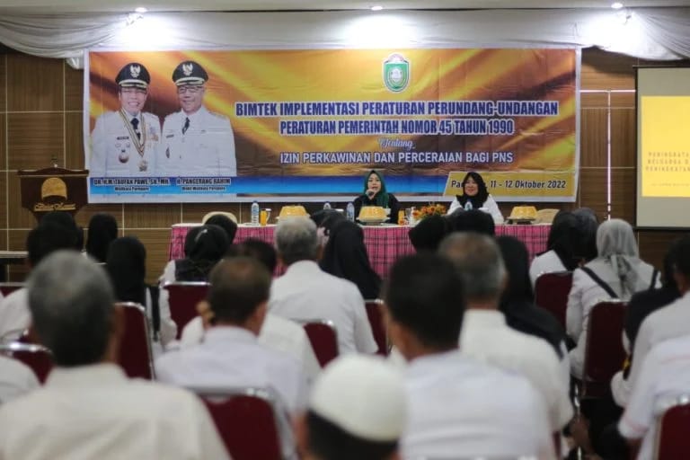 PAREPARE, PIJARNEWS.COM – Ketua TP PKK Parepare, Erna Rasyid Taufan, membawakan materi Peningkatan Ketahanan Keluarga dalam rangka Peningkatan Kinerja PNS.Materi itu, dibawakan Erna pada kegiatan Bimbingan Teknis (Bimtek) Implementasi PP Nomor 45 Tahun 1990 tentang Perkawinan dan Perceraian Bagi PNS serta Pemulangan Pegawai yang Pensiun, yang dilaksanakan Pemerintah Kota Parepare melalui Badan Kepegawaian dan Pengembangan Sumber Daya Manusia Daerah (BKPSDMD), di Hotel Kenari, Rabu (12/10/2022).
