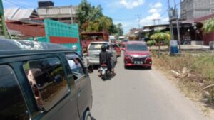 SIDRAP, PIJARNEWS.COM–Kemacetam cukup panjang terjadi di jalan Poros Rappang-Pinrang tepatnya di Depan SPBU Simae, Kelurahan Duampanua, Kecamatan Baranti, Sidrap, Jumat (15/10/2021) sekira pukul 11.30 WITA.