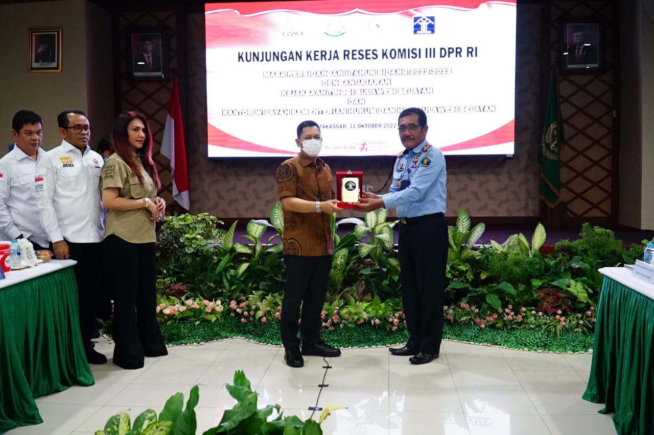 MAKASSAR, PIJARNEWS.COM–Komisi III DPR RI, dipimpin Wakil Ketua, Dr. Ir. H. Adies Kadir, S.H., M.Hum., melaksanakan Kunjungan Kerja Reses Komisi III DPR RI Ke Provinsi Sulawesi Selatan. Dalam kunjungannya yang dilaksanakan di Aula Kejaksaan Tinggi Sulsel, Selasa (11/10/2022), Komisi III meminta penjelasan Kepala Kantor Wilayah Kementerian Hukum dan HAM Sulawesi selatan terkait dengan anggaran dan pengawasan.