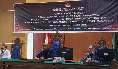 Sebagai langkah antisipasi untuk penyelesaian sengketa proses pemilu, KPU provinsi Sulbar bersama KPU kabupaten se Sulbar melakukan koordinasi, konsultasi ke kantor PTUN Makassar yang wilayah kerjanya termasuk Sulawesi Barat. Kegiatan dilakukan di kantor PTUN Makassar. Senin (26/9/2022)